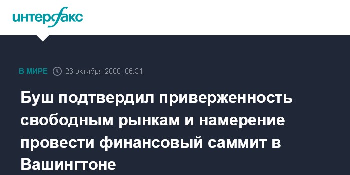 Буш подтвердил приверженность свободным рынкам и намерение провести финансовый саммит в Вашингтоне