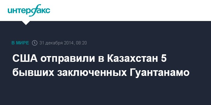 Москва. 31 декабря. INTERFAX.RU - Власти США отправили в Казахстан пятерых бывших заключенных, которые находились в тюрьме Гуантанамо в течение нескольких лет без предъявления обвинений, сообщило в среду агентство Associated Press.