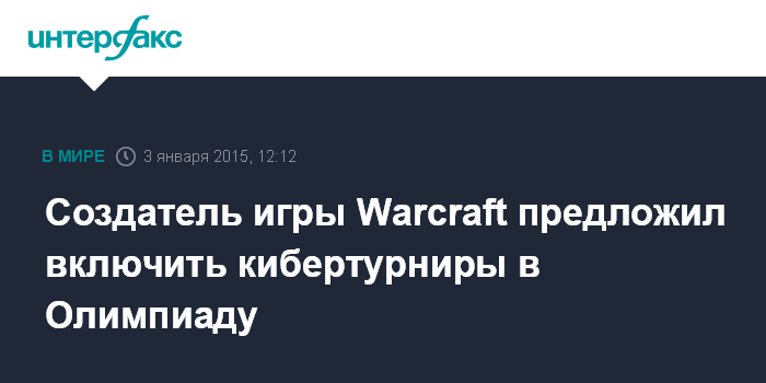 Создатель игры Warcraft предложил включить кибертурниры в Олимпиаду