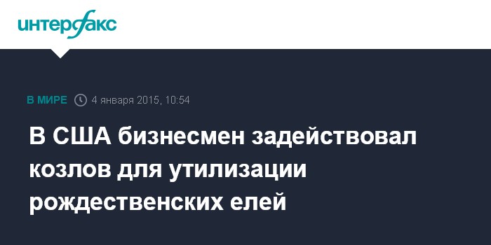 Москва. 4 января. INTERFAX.RU - Предприниматель Томас Вайнс основал в американском городе Рино (штат Невада) организацию "Пасущиеся козлы", которая специализируется на переработке рождественских елей, сообщает агентство AP.