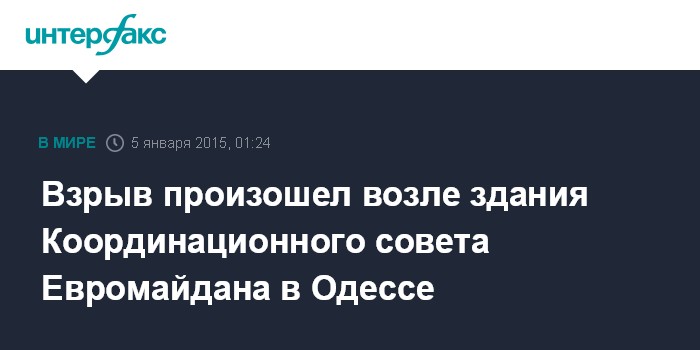 Москва. 5 января. INTERFAX.RU - Взрыв неустановленного взрывного устройства произошел в Одессе (Украина) на улице Гимназической,3.