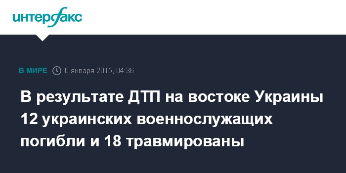 В результате ДТП на востоке Украины 12 украинских военнослужащих погибли и 18 травмированы