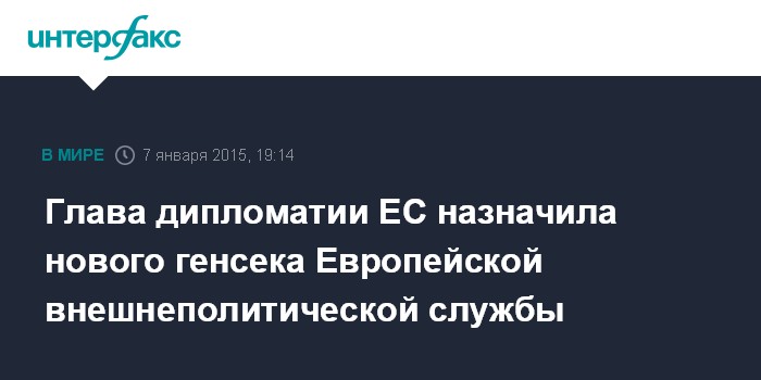 Новый генсек дипломатической службы Евросоюза приступит к исполнению своих обязанностей 1 марта 2015 года. С целью подготовки к этому он начнет работать в ЕВС как специальный советник верховного представителя ЕС с середины января.