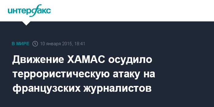Движение ХАМАС осудило террористическую атаку на французских журналистов