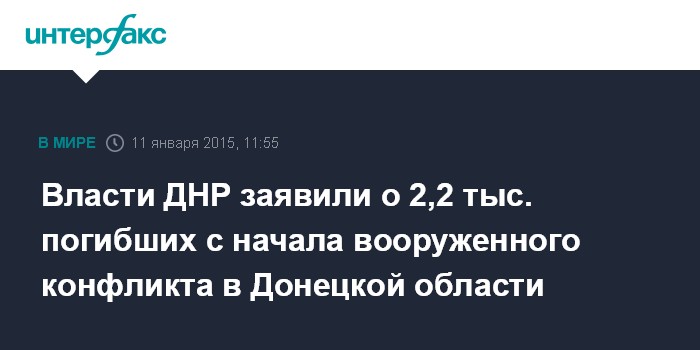 Москва. 11 января. INTERFAX.RU - С начала вооруженного конфликта в Донецкой области погибли более 2 тыс. человек, включая 35 детей, в первый день нового года погибли 15 человек, сообщила уполномоченный по правам человека ДНР Дарья Морозова.