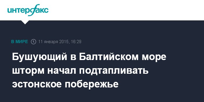 Москва. 11 января. INTERFAX.RU - Бушующий в Балтийском море шторм выдавливает воду на побережье Эстонии, что привело к подтоплению участков в ряде населенных пунктов.