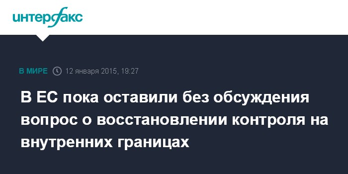 Москва. 12 января. INTERFAX.RU - Решений о восстановлении пограничного контроля внутри шенгенской зоны из-за недавних событий в Париже пока не принималось, сообщил в эфире испанской радиостанции Cadena SER глава правительства Испании Мариано Рахой.