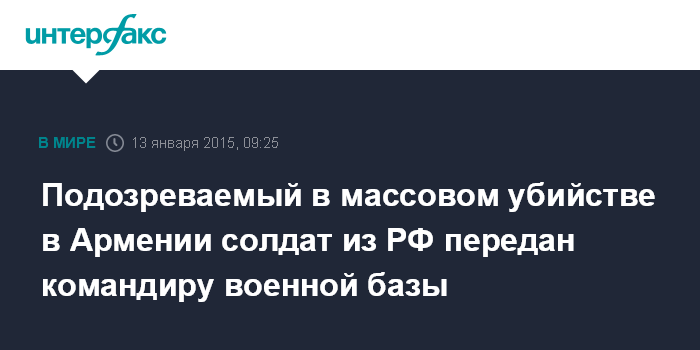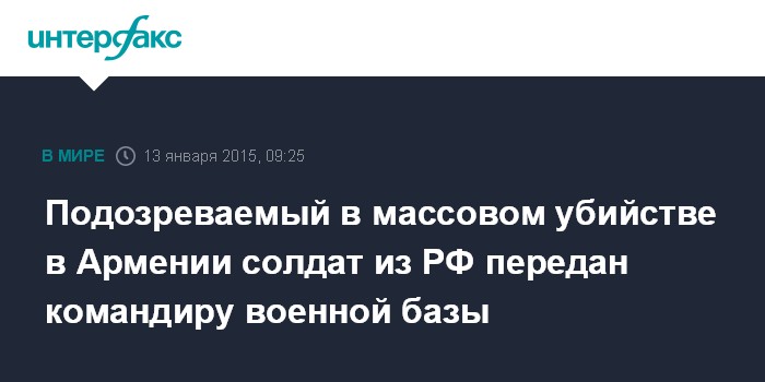Подозреваемый в массовом убийстве в Армении солдат из РФ передан командиру военной базы