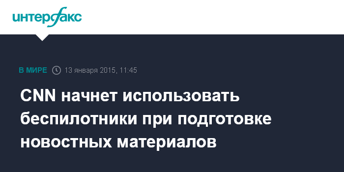 Москва. 13 января. INTERFAX.RU - Американский телеканал CNN подписал соглашение с Федеральным управлением гражданской авиации об использовании беспилотников при подготовке новостных материалов, говорится в коммюнике канала.