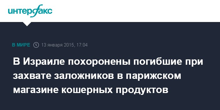 Москва. 13 января. INTERFAX.RU - В Израиле состоялись похороны четырех евреев, убитых террористом при захвате заложников в магазине кошерных продуктов в Париже 9 января, сообщает BBC.