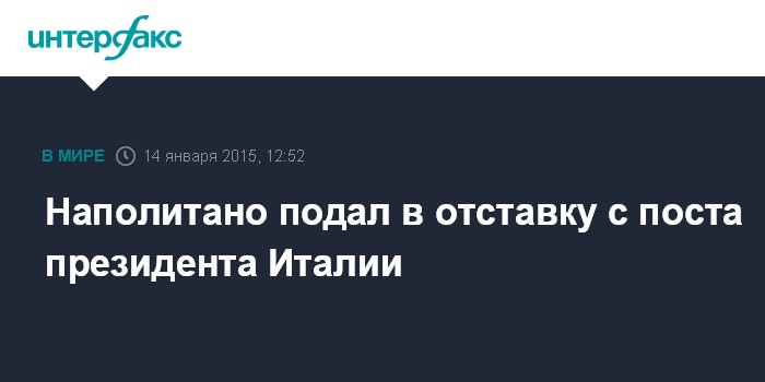 Москва. 14 января. INTERFAX.RU - Президент Италии Джорджо Наполитано в среду подписал прошение об отставке, сообщает итальянское телевидение.