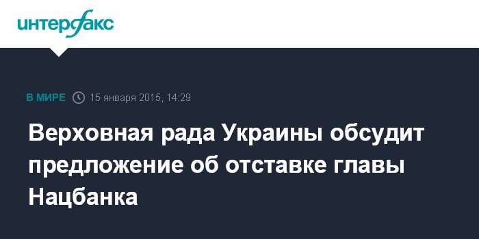 Верховная рада Украины обсудит предложение об отставке главы Нацбанка