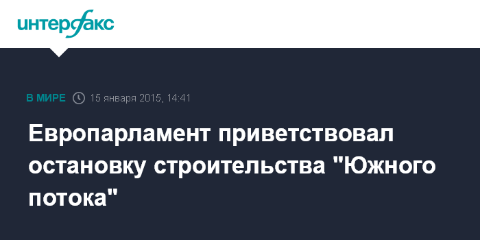 Москва. 15 января. INTERFAX.RU - Европарламент высказался за приоритет трубопроводных проектов, которые диверсифицируют энергоснабжение ЕС, и приветствовал прекращение проекта "Южный поток".