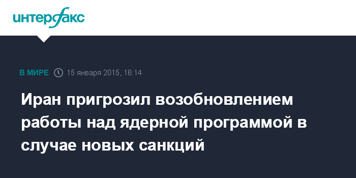 Иран пригрозил возобновлением работы над ядерной программой в случае новых санкций