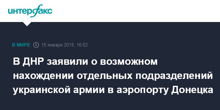Москва. 15 января. INTERFAX.RU - Сведения о переходе донецкого аэропорта под полный контроль ополченцев носят предварительный характер, заявили в четверг "Интерфаксу" в штабе ополчения самопровозглашенной Донецкой народной республики.