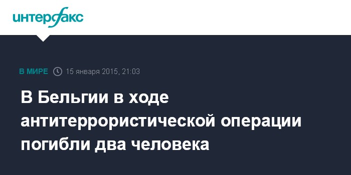 Москва. 15 января. INTERFAX.RU - Два человека погибли и один ранен во время операции бельгийской федеральной полиции против группы предполагаемых террористов в городе Вервье вечером в четверг, сообщил телеканал RTBF.