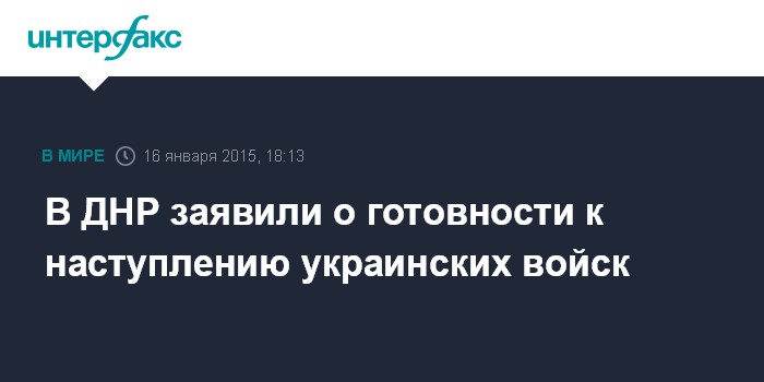 Москва. 16 января. INTERFAX.RU - Руководство Донецкой народной республики ожидает нападений со стороны украинских войск и заявляет о готовности перейти в контрнаступление.