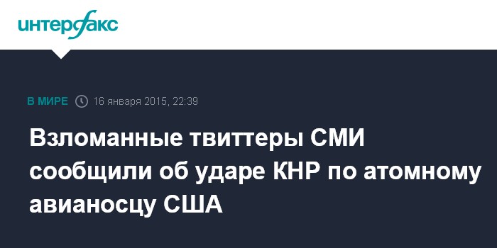 Взломанные твиттеры СМИ сообщили об ударе КНР по атомному авианосцу США