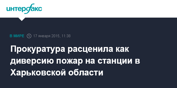 Москва. 17 января. INTERFAX.RU - Возгорание цистерны с бензином на железнодорожной станции "Шебелинка" (Балаклейский район Харьковской области) квалифицируется прокуратурой как диверсия.