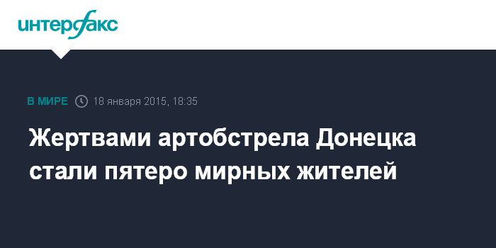 Москва. 18 января. INTERFAX.RU - Не менее пяти мирных жителей погибли в результате обстрелов в Донецке, огонь не прекращается, сообщило в воскресенье Донецкое агентство новостей.