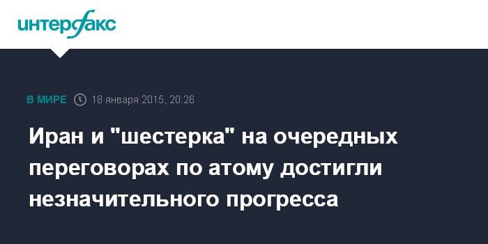 Москва. 18 января. INTERFAX.RU - Представители Ирана и "шестерки" международных посредников на состоявшихся в воскресенье переговорах по атомной проблеме в Женеве существенного прогресса не достигли, сообщают западные СМИ со ссылкой на неназванный дипломатический источник.