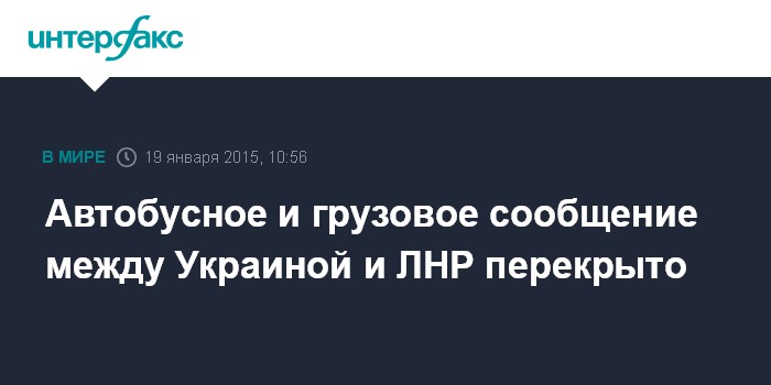 Москва. 19 января. INTERFAX.RU - Транспортное сообщение между Украиной и самопровозглашенной Луганской народной республикой с понедельника полностью прекращено, сообщил глава Луганской областной государственной администрации (ОГА) Геннадий Москаль.