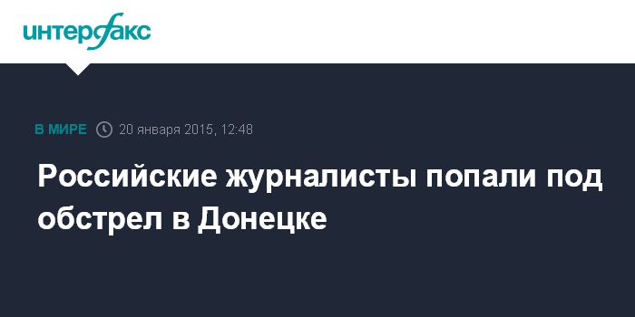 Москва. 20 января. INTERFAX.RU - Съемочная группа телеканала "Россия 24" попала под обстрел в Донецке, никто не пострадал.