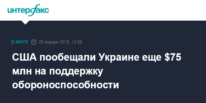 Москва. 20 января. INTERFAX.RU - Конгресс США принял решение о выделении дополнительных $75 млн для поддержки в сфере безопасности Украины, сообщил посол США в Киеве Джеффри Пайетт.