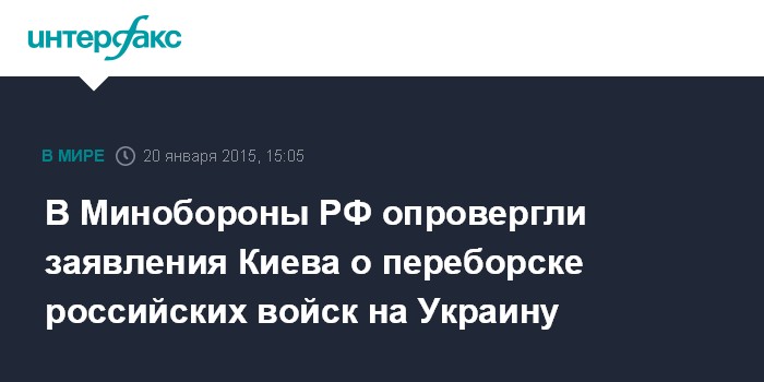 Москва. 20 января. INTERFAX.RU - Заявления киевских властей о вводе российских войск и боевой техники на территорию Украины со стороны России не соответствуют действительности, заявил официальный представитель Минобороны России генерал-майор Игорь Конашенков.