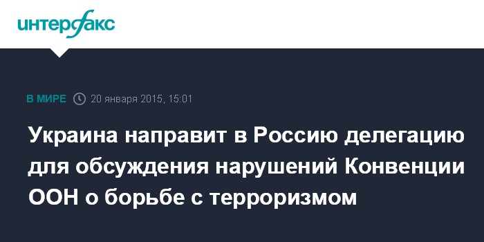 Украина направит в Россию делегацию для обсуждения нарушений Конвенции ООН о борьбе с терроризмом