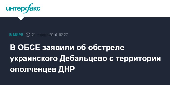Москва. 21 января. INTERFAX.RU - Специальная мониторинговая миссия ОБСЕ заявила, что населенный пункт Дебальцево был обстрелян из Горловки, которую контролируют ополченцы самопровозглашенной Донецкой народной республики (ДНР).