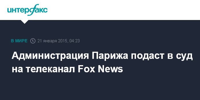 Москва. 21 января. INTERFAX.RU - Столица Франции подаст в суд на телеканал Fox News за ущерб, нанесенный имиджу города, сообщила мэр Парижа Анн Идальго в интервью телеканалу CNN.