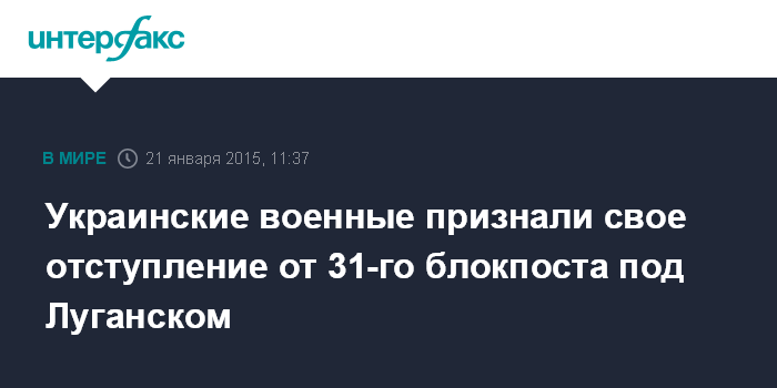 "С 31-го блокпоста необходимо было отойти для того, чтобы сохранить жизни людей. Здесь есть соответствующие подразделения и люди, которые принимают решения: оставлять или нет блокпосты. Вчера было принято решение отойти", - сообщил представитель украинских военных Леонид Матюхин в среду утром.