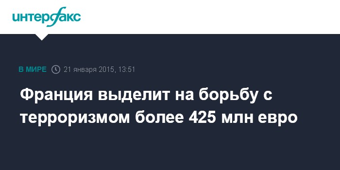 Москва. 21 января. INTERFAX.RU - План усиления борьбы с терроризмом во Франции обойдется в 425 млн евро, объявил в среду премьер-министр страны Манюэль Вальс.