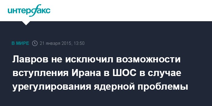 Москва. 21 января. INTERFAX.RU - Членство Ирана в Шанхайской организации сотрудничества реально, заявил глава российского МИД Сергей Лавров.