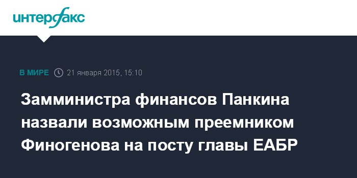 Источник, близкий к набсовету ЕАБР, подтвердил "Интерфаксу" информацию о возможном уходе Финогенова. "Он отработал два контракта, задачи на период становления банка успешно выполнил", - сказал собеседник агентства. Панкин действительно рассматривается в качестве кандидата на пост главы ЕАБР, однако Россия - лишь один из акционеров банка, другие страны предлагают собственные варианты, пока никаких решений нет, добавил он.