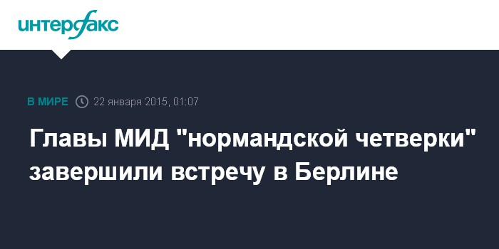 Москва. 22 января. INTERFAX.RU - Встреча глав МИД нормандской четверки (Россия, Украина, ФРГ, Франция) завершилась в Берлине.