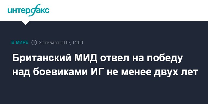 Москва. 22 января. INTERFAX.RU - Борьба с террористами "Исламского государства" в Ираке может занять до двух лет, сообщил в интервью британскому телеканалу Sky News глава МИД Великобритании Филипп Хаммонд.