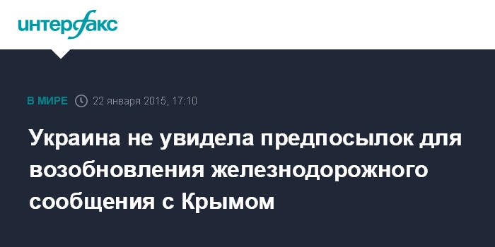 Москва. 22 января. INTERFAX.RU - Государственная администрация железнодорожного транспорта Украины ("Укрзализныця") заявила, что пока не видит возможности для восстановления железнодорожного сообщения с Крымом.