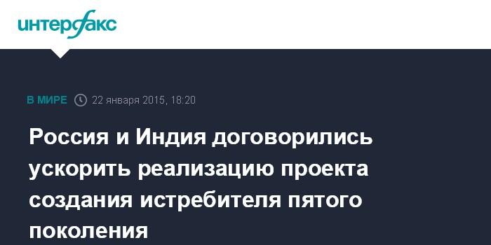 "Индия договорилась ускорить реализацию проекта создания истребителя пятого поколения совместно с Россией", - сообщает индийский новостной портал NDTV, комментируя итоги визита российского министра обороны Сергея Шойгу в Дели.
