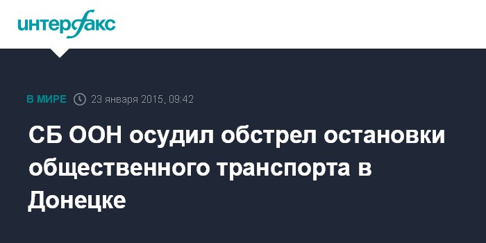 Москва. 23 января. INTERFAX.RU - Совет Безопасности ООН решительно осудил и потребовал объективного расследования обстрела остановки общественного транспорта в Донецке, унесшего жизни мирных жителей.