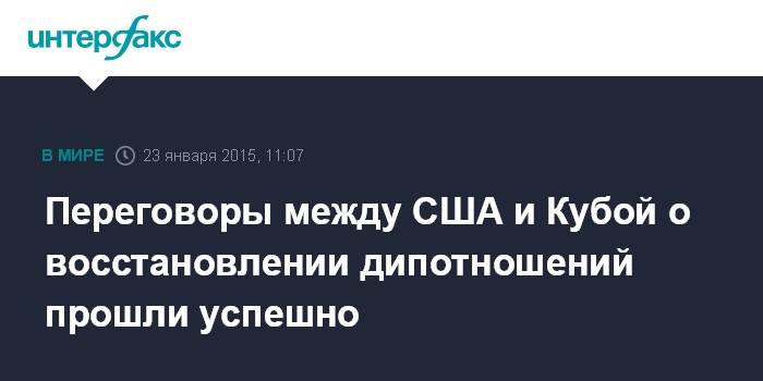 Москва. 23 января. INTERFAX.RU - США и Куба завершили в Гаване первый раунд переговоров по восстановлению дипломатических связей, в ходе которого были достигнуты некоторые успехи, сообщает в пятницу агентство Associated Press.