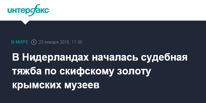 Москва. 23 января. INTERFAX.RU - В суде Амстердама состоялась первая формальная встреча в рамках судебного процесса по поводу возвращения музеям Крыма коллекции скифских драгоценностей.