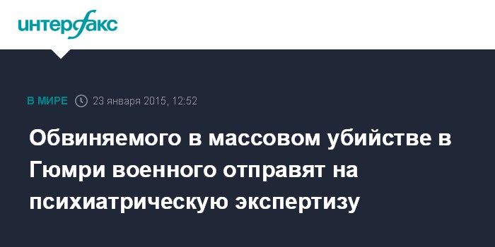 По его словам, судебные медики должны определить психическое здоровье военнослужащего, устроившего резню в Гюмри. "Все экспертизы, в том числе и эта, будут проведены в Армении на территории 102-й российской военной базы", - подчеркнул источник.