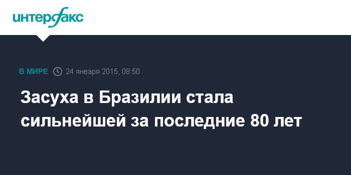 Москва. 24 января. INTERFAX.RU - Наиболее густонаселенные регионы Бразилии столкнулись с нехваткой воды из-за засухи, которую министр по охране окружающей среды Изабелла Тейшейра уже назвала сильнейшей с 1930 года. Об этом сообщает BBC.