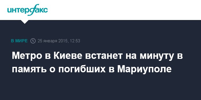 Москва. 25 января. INTERFAX.RU - В память о жертвах обстрела в Мариуполе киевский метрополитен остановит движение поездов на всех линиях на 1 минуту в 12:00, сообщается на сайте КП "Киевский метрополитен".