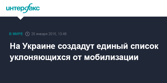 Москва. 25 января. INTERFAX.RU - На Украине идет работа по созданию единого реестра военнообязанных, на данном этапе в него попадут те, кто уклоняется от мобилизации, сообщил начальник мобилизационного отдела мобилизационного управления Генштаба Вооруженных сил Украины Александр Правдивец.