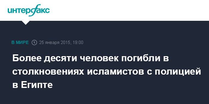 Москва. 25 января. INTERFAX.RU - По меньшей мере, 11 человек погибли в Египте в воскресенье в результате столкновений полиции и исламистов, вышедших на демонстрации в годовщину восстания 2011 года, сообщили местные власти.