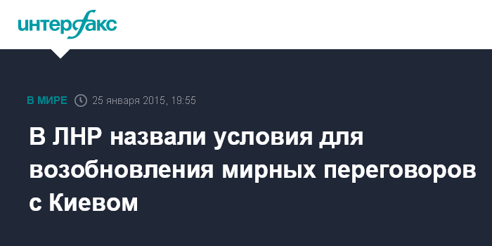 Москва. 25 января. INTERFAX.RU - Руководство самопровозглашенной Луганской народной республики готово вернуться за стол переговоров с Киевом, как только увидят с его стороны какие-либо шаги по деэскалации конфликта.