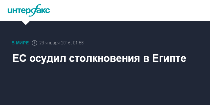 Москва. 26 января. INTERFAX.RU - Евросоюз осудил столкновения в Египте, приведшие к гибели людей.
